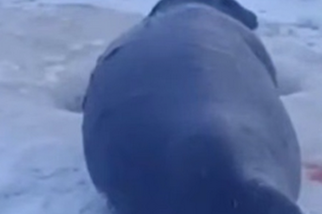 Свидетели заметили кольчатую нерпу недалеко от Салехарда, которая, вероятно, сбилась с пути в процессе охоты.