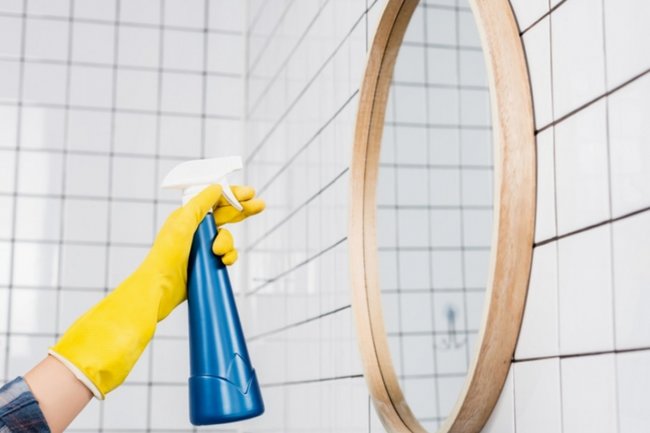 Для достижения идеального блеска используйте ткань из микрофибры. Будьте осторожны и не обрабатывайте раму зеркала, если она может повредиться от влаги.